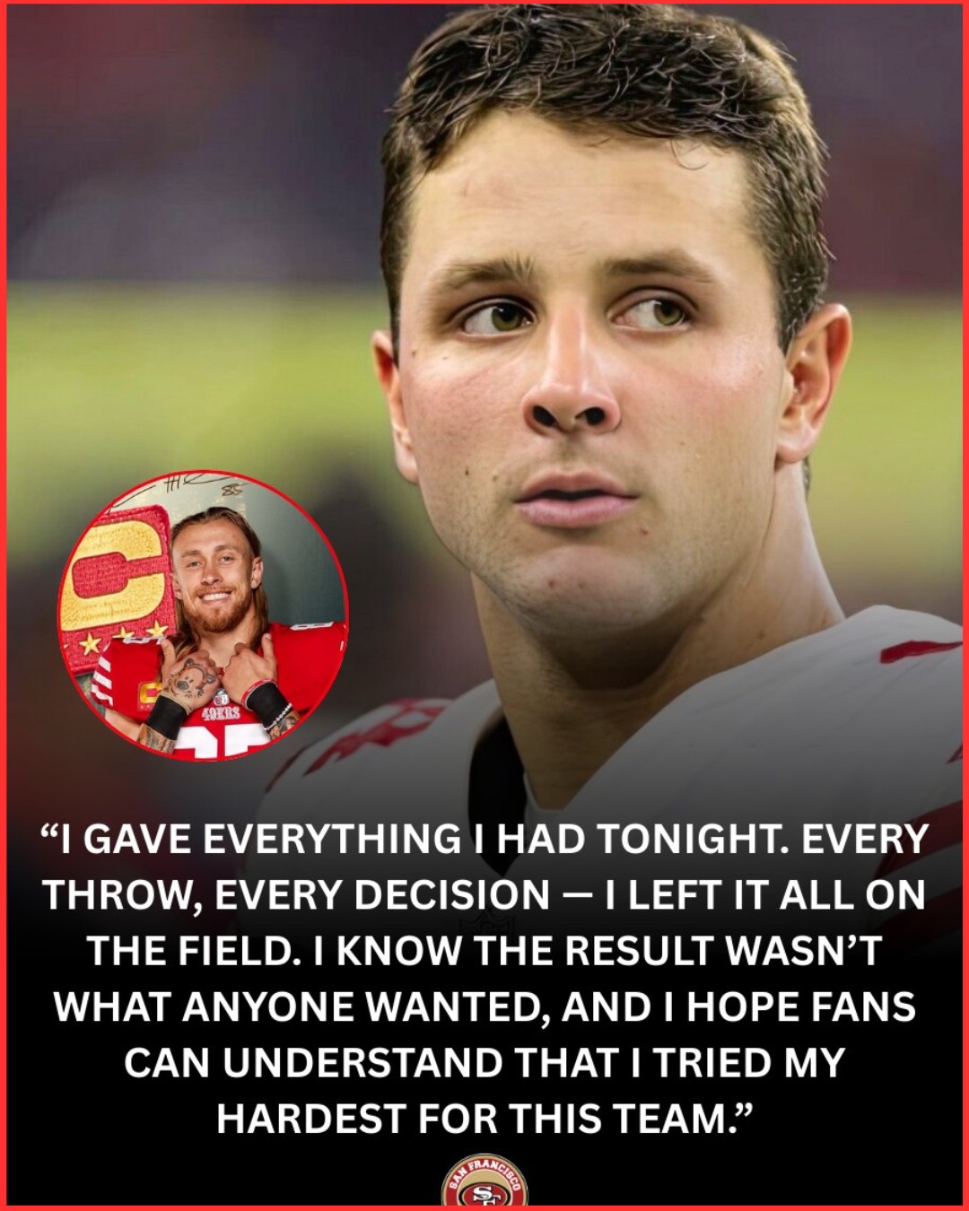 And at the center of it all was George Kittle — not asking to be followed, but daring everyone around him to rise with him.