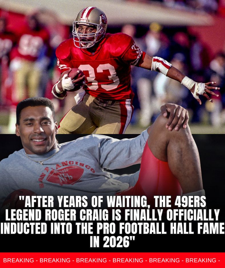 For decades, San Francisco 49ers fans held their breath, believing that one of the franchise’s greatest warriors had long deserved a place among football’s immortals. And today, at last, the moment finally arrived. In an announcement that sent shockwaves of joy throughout the NFL community, Roger Craig — the iconic dual-threat running back who redefined his position — has officially been selected for the Pro Football Hall of Fame Class of 2026.