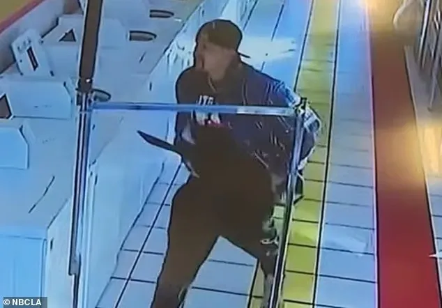 The suspect smashed through a glass door to re-enter the laundromat, narrowly missing bystanders, then chased the teen through the business while swinging the weapon and threatening customers.