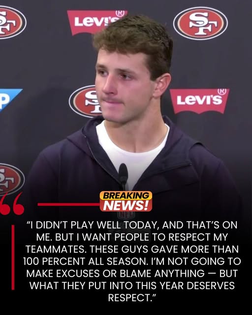 “I didn’t play well today, and that’s on me,” Purdy said after the game. “But I want people to respect my teammates. These guys gave more than 100 percent all season. I’m not going to make excuses or blame anything — but what they put into this year deserves respect.”