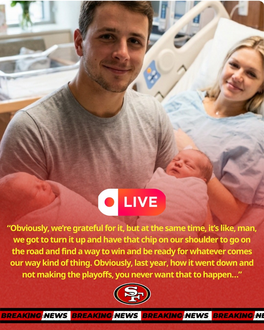 “Obviously, we’re grateful for it, but at the same time, it’s like, man, we got to turn it up and have that chip on our shoulder to go on the road and find a way to win and be ready for whatever comes our way kind of thing. Obviously, last year, how it went down and not making the playoffs, you never want that to happen…” Brock Purdy said.