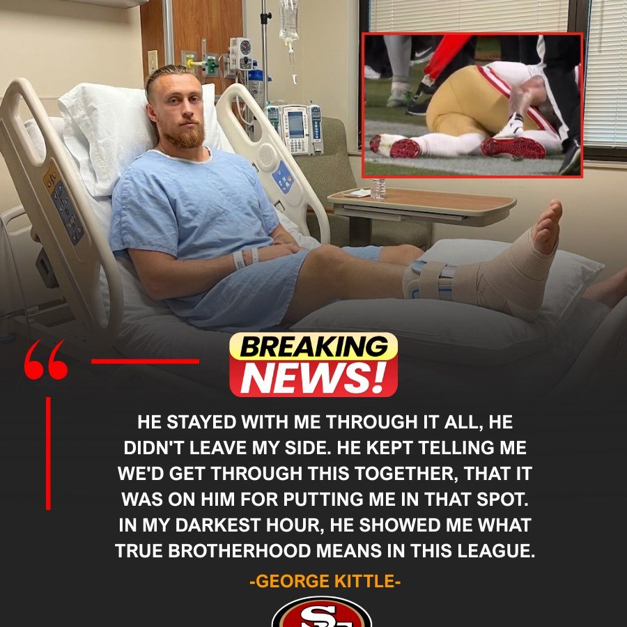 Later that same night — still groggy, still in pain — Kittle opened his eyes after surgery and saw Purdy standing there.