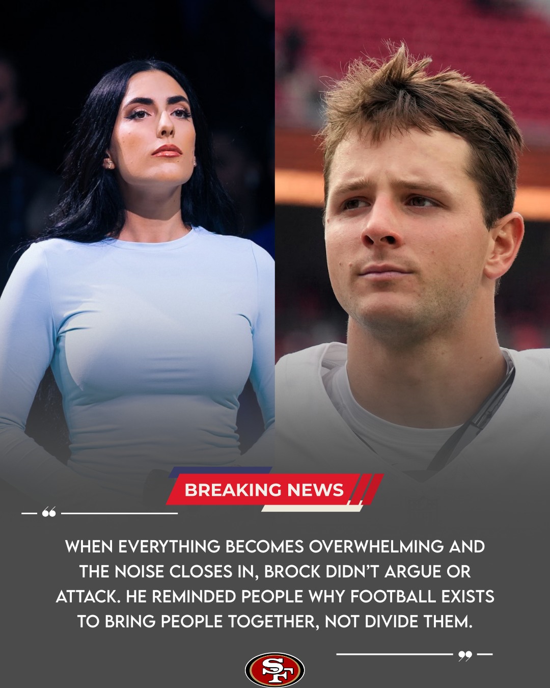 “When everything becomes overwhelming and the noise closes in, Brock didn’t argue or attack. He reminded people why football exists — to bring people together, not divide them.”