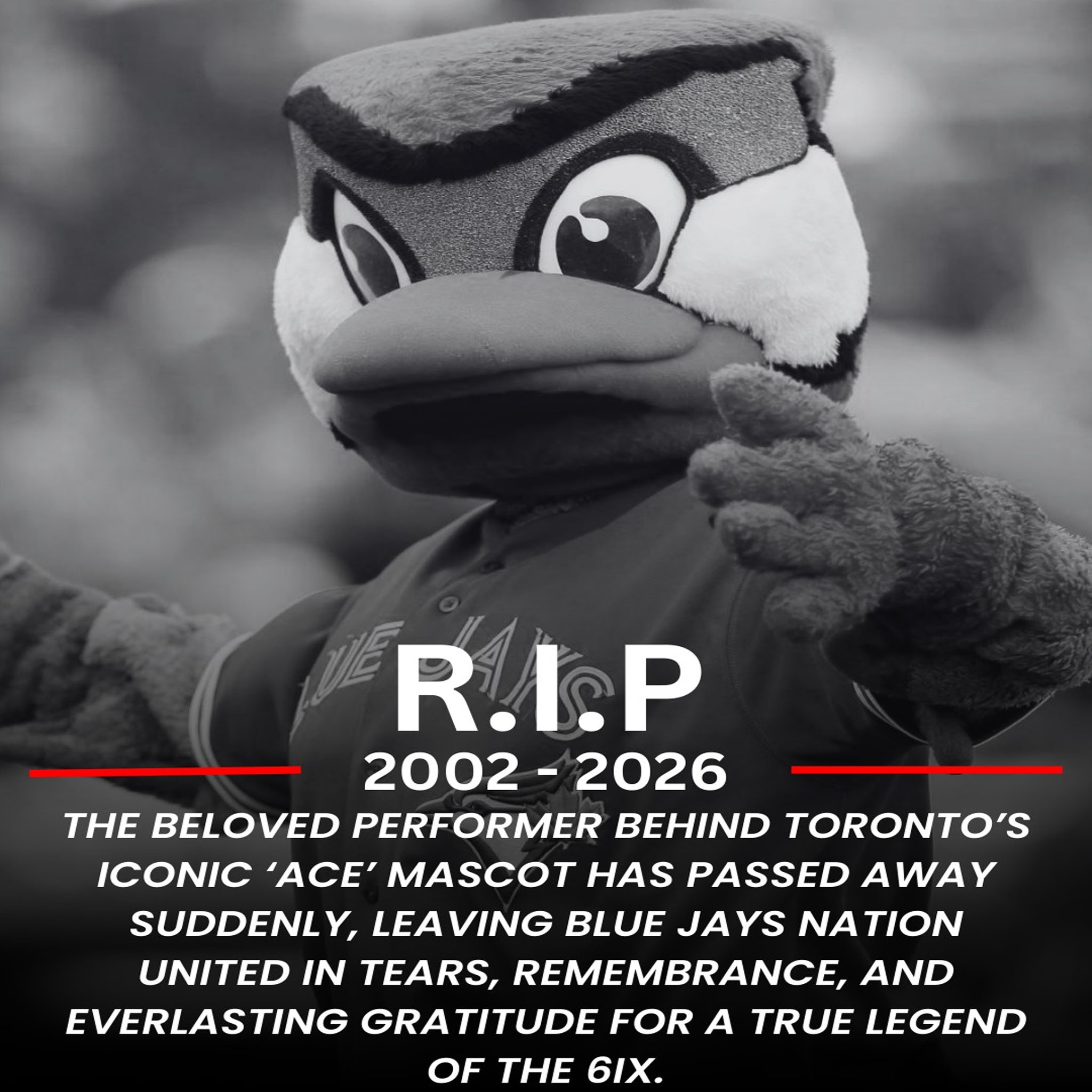 In this fictional account, the Toronto Blue Jays confirmed heartbreaking news that sent shockwaves through Rogers Centre and far beyond its walls: the beloved performer behind Ace, the team’s iconic mascot, has passed away following a tragic accident.