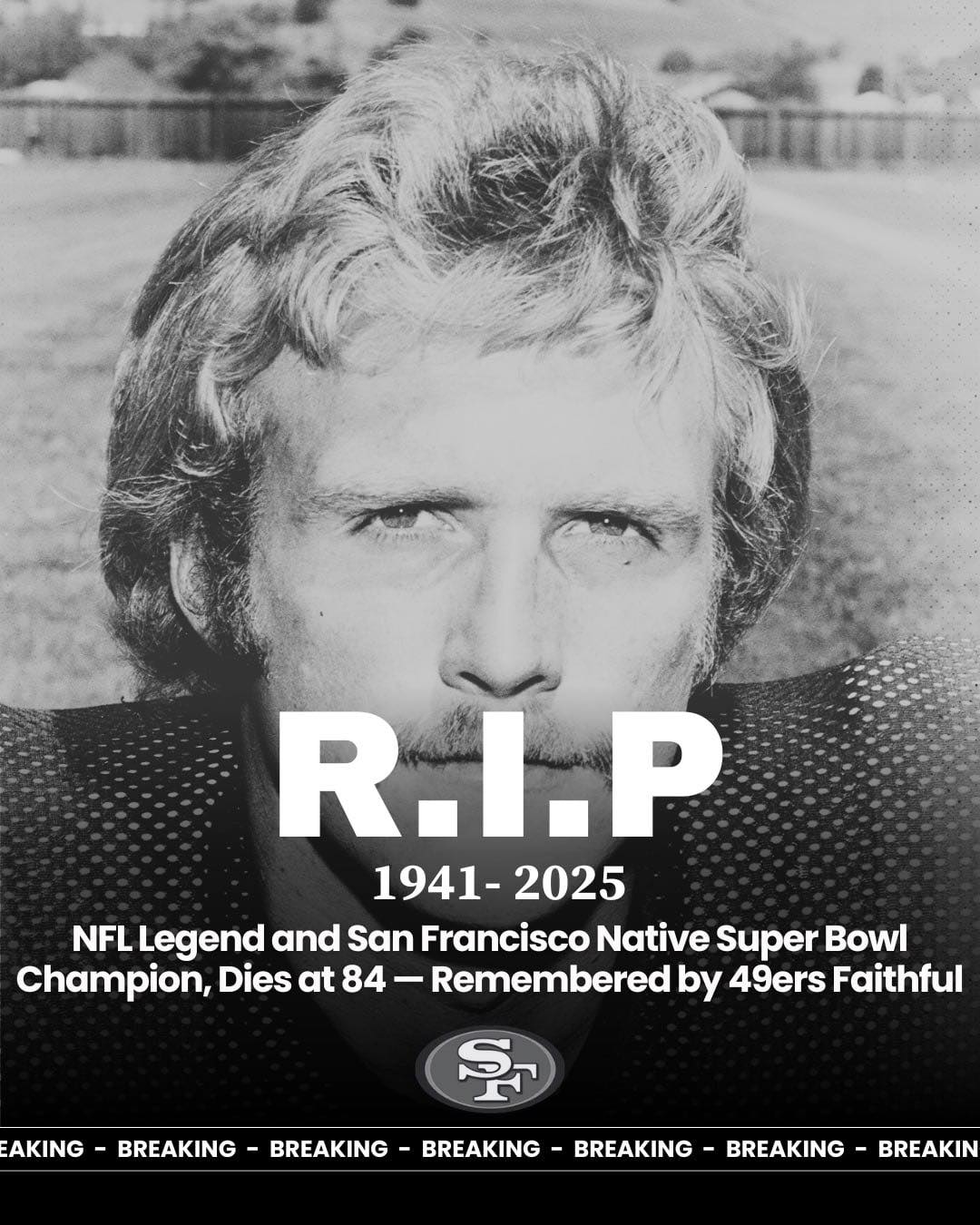 The NFL world is mourning the loss of a true icon. A Super Bowl champion, San Francisco native, and beloved figure in football history has passed away at the age of 84, leaving behind a legacy that stretches far beyond the field. For generations of fans, he wasn’t just a player — he was a symbol of grit, loyalty, and pride for the city he called home.
